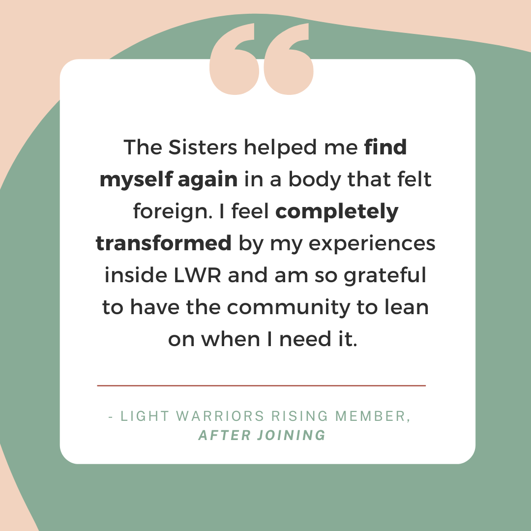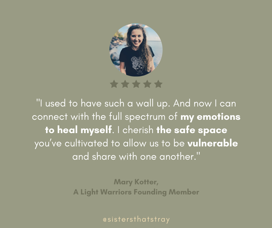 We interviewed one of our founding members of Light Warriors Rising about how having a community to learn with and from, to be vulnerable with and feel safe in –– has shaped her journey and given her clarity and confidence in her purpose; and how being a part of Light Warriors Rising has supported her in launching her own soulful business platform helping women heal the mother wound.